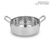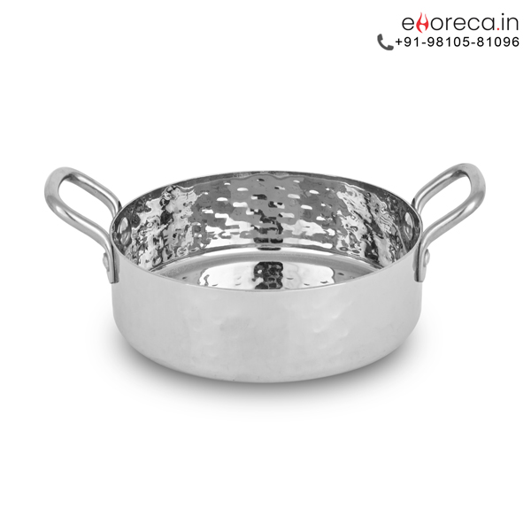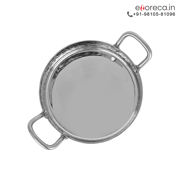This Hammered Round Serving Pan serves various culinary purposes. It is perfect for serving steamed rice. Present fragrant biryanis or pilafs beautifully. Use it for curries, stews, or vegetables. The wide mouth allows for easy serving. Its comfortable handles ensure secure transport. Bring hot food from kitchen to table safely. This versatile pan enhances any meal presentation.