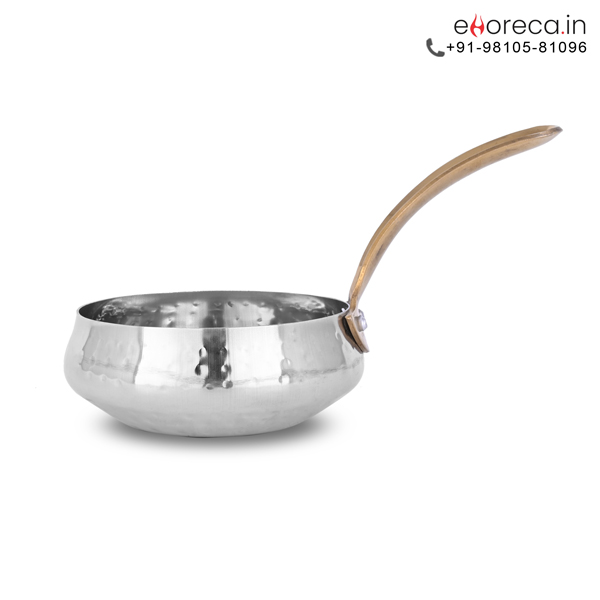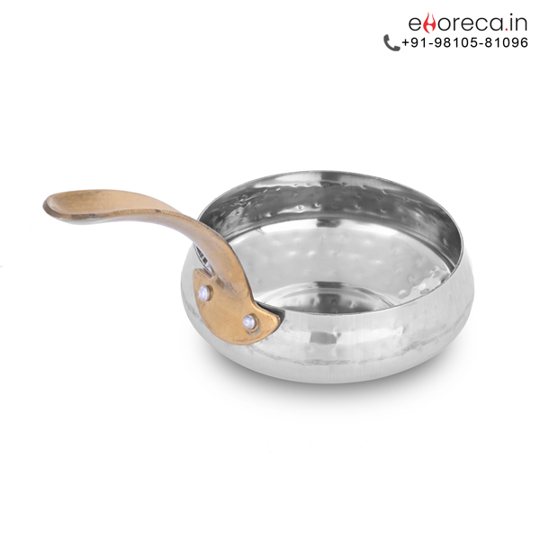 4. Hammered SS Belly Serving Pan with Brass Handle