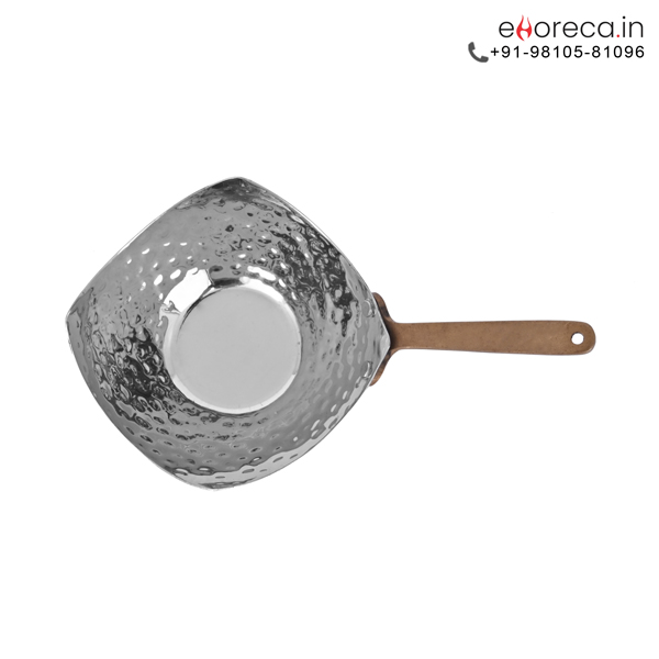 The SS Hammered Serving Saucepan is an elegant, high-quality stainless steel vessel designed for professional table service. Featuring a stunning hammered finish and ergonomic handle, it provides a sophisticated way to serve gravies, sauces, and side dishes. Its durable, rust-resistant construction ensures long-lasting performance, making it a versatile and stylish addition to any home or commercial kitchen.