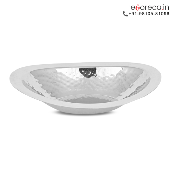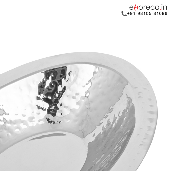 The SS Oval Hammered Bread Basket instantly brings a touch of sophisticated luxury to your modern dining table. Expert craftsmen shape each piece from high-quality stainless steel to ensure a durable and rust-resistant serving experience. You will immediately notice the beautiful handcrafted hammered texture that reflects ambient light with a brilliant luster. This specialized finish effectively masks minor fingerprints while maintaining a professional appearance during busy family meals. Transition words help illustrate how this vessel blends artistic flair with practical utility for your home. The elegant oval silhouette provides a secure and comfortable grip for users of all ages. We offer this exquisite item in two versatile sizes to meet your specific hospitality requirements perfectly. Your guests will admire the premium aesthetic that this specialized SS Oval Hammered Bread Basket delivers.