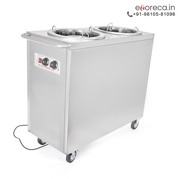 This multipurpose Electric Plate Warmer Trolley adapts effortlessly to your specific venue requirements and guest capacity. We offer this exquisite heating solution in two sizes, including both single and double stack configurations. Transition words illustrate how this unit optimizes your workflow during busy wedding receptions or corporate buffet events. The specialized top openings provide quick and easy access to stacked plates during peak service hours. You can also utilize the intuitive control knobs to adjust temperature settings based on your specific dish requirements. Similarly, the integrated handle allows for precise steering through narrow hallways or crowded banquet spaces. This trolley provides a seamless transition from the dishwasher station to the final serving point. It represents a smart investment for any hospitality manager who values food quality and operational speed.