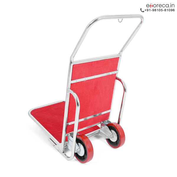 This heavy-duty SS folding luggage trolley handles substantial weight reliably. Staff easily move multiple heavy suitcases or boxes quickly. Consequently, service speed and guest satisfaction both increase immediately. The robust, carpeted platform securely holds items during transit effectively. Moreover, the smooth-rolling, durable wheels ensure quiet operation constantly. This feature proves essential in high-traffic areas like hotel lobbies and airport terminals always. Users can navigate tight corners and hallways without issue easily.